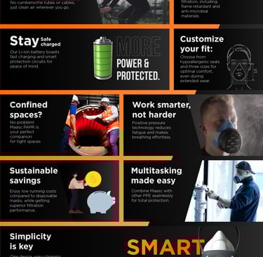 Introducing the MAASC respirator – a leap forward in respiratory technology. Crafted with innovation at its core, MAASC ensures you're not just protected, but empowered. Its streamlined design marries comfort and function, allowing you to move freely in any environment. The MAASC's EN 12942 Class TM3 certification and Total Inward Leakage of < 0.05% guarantee top-tier performance. Join the future of respiratory well-being. Choose MAASC, where protection meets progress.